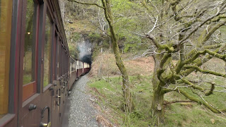 Before long, however, the train starts its ascent towards Beddgelert. Shortly after leaving Nantmor, the train plunges into a 280m long tunnel ......